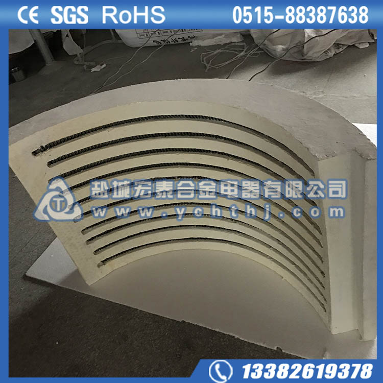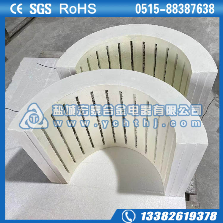 纤维电热模块是采用特殊的加工工艺将纤维材料与电阻丝镶嵌组合,形成单个纤维质电热体,电阻丝布丝方式可分为“之” 型和“螺旋”型。成型方式可分为镶嵌式和埋入式。使用温度300-1300度, 由于它具有独特的优点,所以是传统电阻加热设备的理想替代产品。