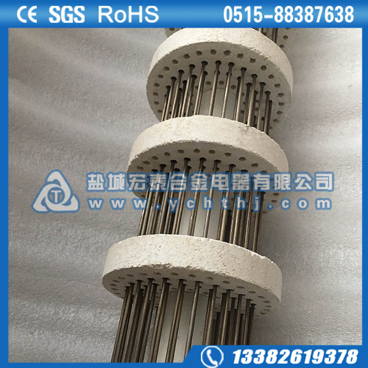 - 产品说明:由U型轴向排列端部焊接的电阻丝和陶瓷支撑架组成,内芯与外保护套管之间无屏蔽,散热好