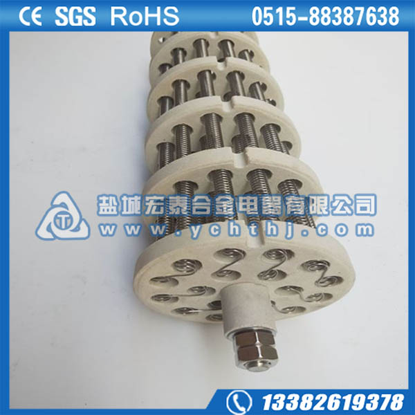 - 产品说明:由U型轴向排列端部焊接的电阻丝和陶瓷支撑架组成,内芯与外保护套管之间无屏蔽,散热好