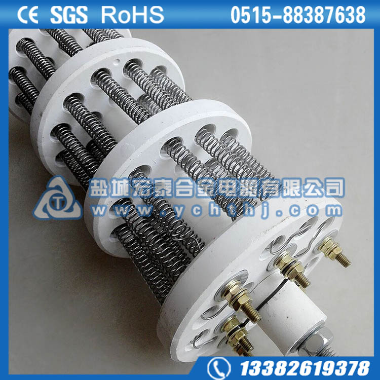 - 产品说明:由U型轴向排列端部焊接的电阻丝和陶瓷支撑架组成,内芯与外保护套管之间无屏蔽,散热好