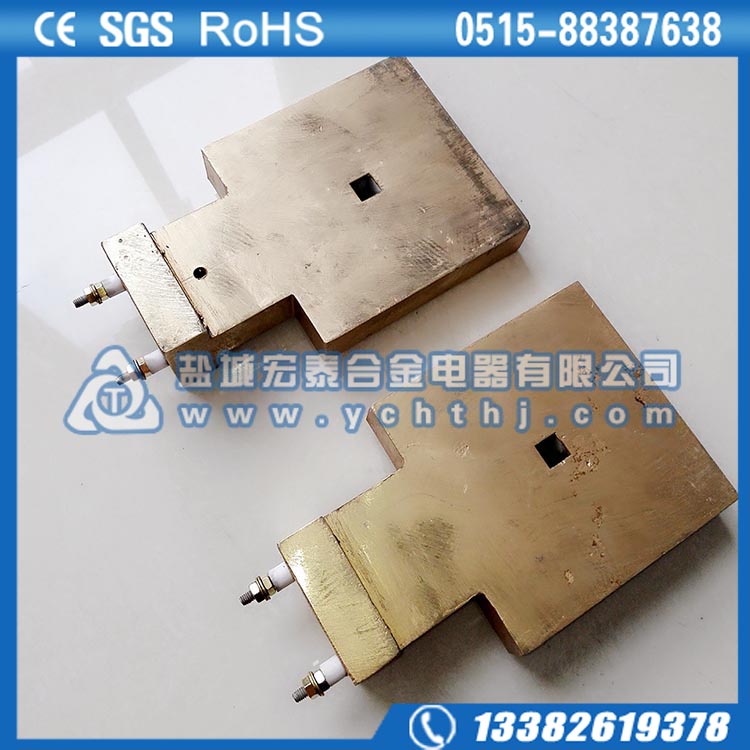 1、铸铝、铸铜加热器:将管状电热加热元件浇铸在铝、铜溶液中压制成不同形状的加热器。主要用于塑料机械、烘箱、煮水器、管道以及无腐蚀液体的加热升温。
