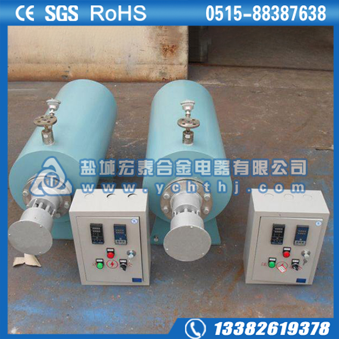 导热油加热器是将是将电加热器直接插入有机载体(导热油)中直接加热,利用循环泵,强制导热油进行液相循环,将热量传递给用一个或多种用热设备,经用热设备卸载后,重新通过循环泵,回到加热器,再吸收热量,传递给用热设备,如此周而复始,实现热量的连续传递,使被加热物体温度升高,达到加热的工艺要求。