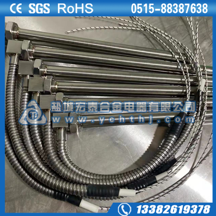 7、单头电加热管安装前应清理干净模具孔内留下的杂质,如有机油等残留,加热后会被碳化,从而影响热传导的能力。