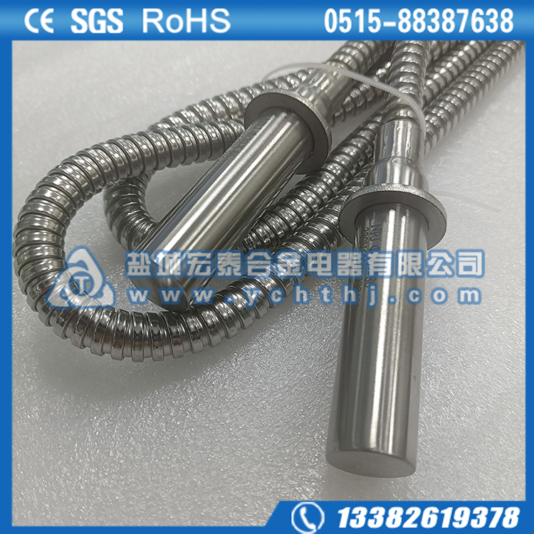 7、单头电加热管安装前应清理干净模具孔内留下的杂质,如有机油等残留,加热后会被碳化,从而影响热传导的能力。