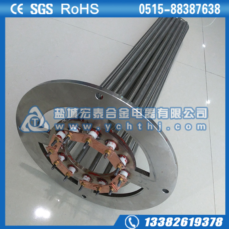 法兰电加热管通常由1、2、3、6、9、12等(一般3的倍数)个U型加热管通过TIG氩弧焊接在法兰上而形成。