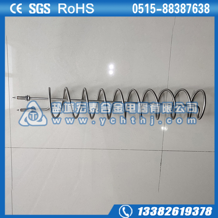管状电热元件由金属管、螺旋状电阻丝及导热性好、绝缘性好的结晶氧化镁粉等组成。可以对系统进行加热的产品。电加热管选用优质国产厚壁无缝不锈钢管、美国进口高温氧化镁粉及封口材料,使电热管耐温达900℃,电热管在暂时脱水状态下干烧不会损坏;并采用气氛保护发黑网带炉经1060℃高温渗氮处理工艺,提高了电热管的耐高温和耐腐性,确保使用寿命 。加热管是在无缝金属管内(碳钢管、钛管、不锈钢管、铜管)装入电热丝,空隙部分填满有良好导热性和绝缘性的氧化镁粉后缩管而成,再加工成用户所需要的各种型状。它具有结构简单,热效率高,机械强度好,对恶劣的环境有良好的适应性。它可用于各种液体和酸碱盐的加热,同时也适应低溶点的金属加热溶化(铅、锌、锡、巴氏合金)